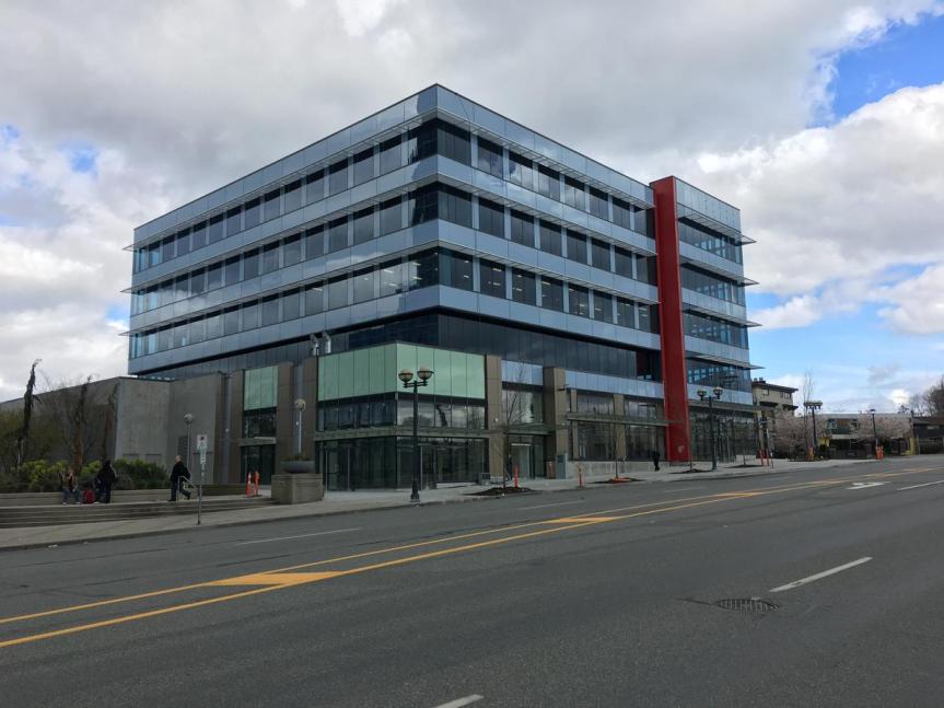 Nearly 3 years since construction began, SFU’s new Sustainable Energy & Environmental Engineering Building officially opened today. The opening was marked with a ceremony attended by BC’s premier John Horgan, MLA’s and other guests. The 5-storey, 220,000 sq.ft. building, designed by Vancouver’s late Bing Thom, has already become a new landmark redefining the Surrey Central area.