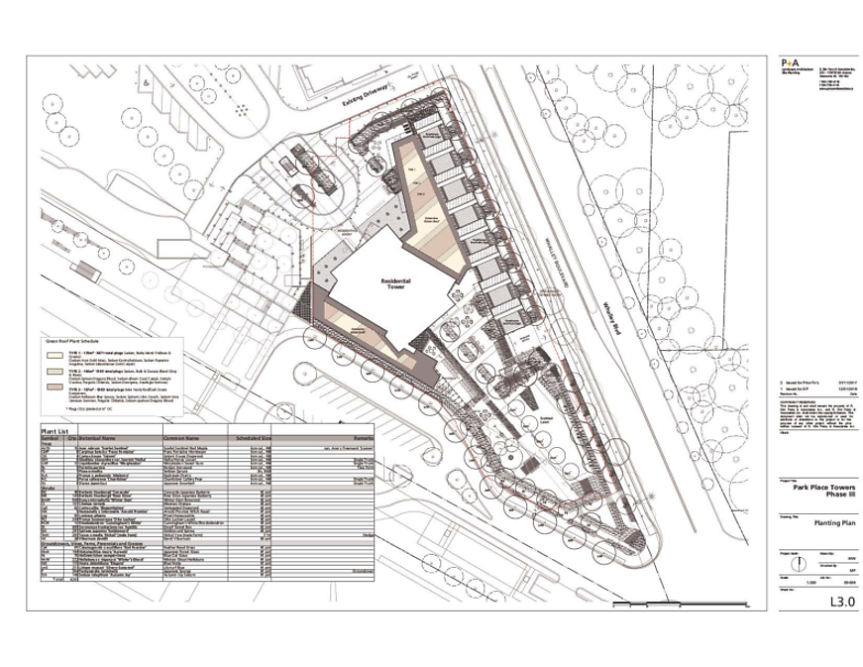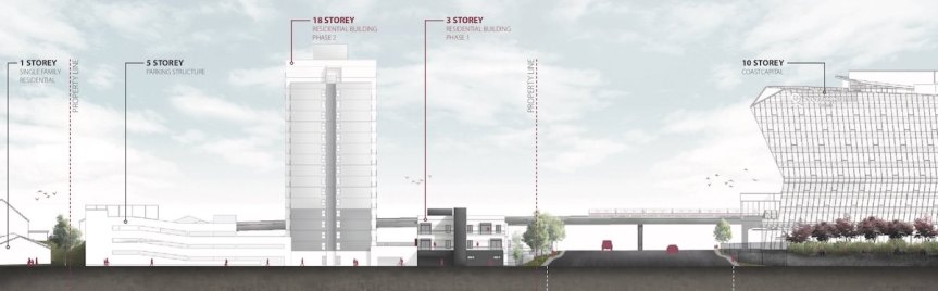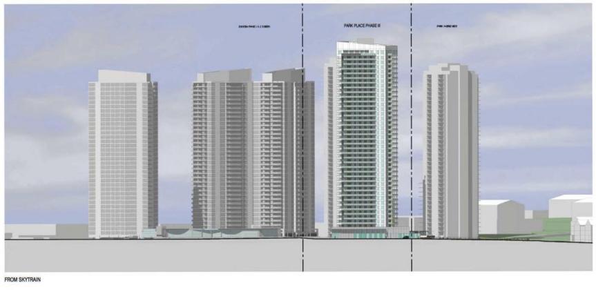 - A General Development Permit (Form & Character) for the entire site to allow for a phased, mixed-used development consisting of 3 high-rise and 2 low-rise buildings, including:
