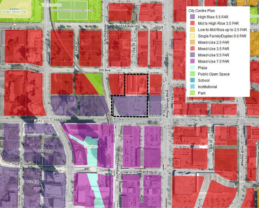 - OCP Amendment and City Centre Plan amendments to allow for up to 7.5 FAR (9.2 FAR net) density.