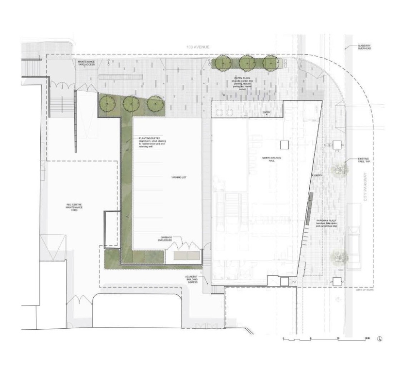 Plan view of the new North Station House at City Parkway and 103 Avenue