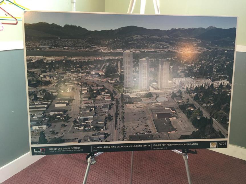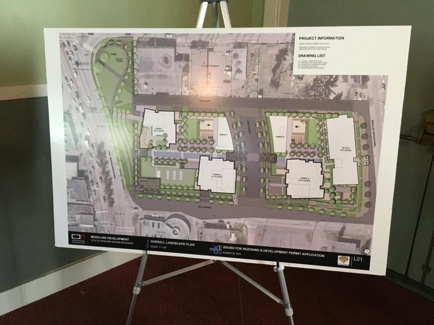 Surrey Council gave 1st & 2nd Readings on Monday night to Bosa BlueSky’s next project in Surrey City Centre – Brightside – which will now head to Public Hearing and 3rd Reading (Preliminary Approval) in 2 weeks. The project, which has been under application for the past 2 years, is set to transform the former Brick / Sears Outlet store site at City Parkway & 104 Avenue, which has been sitting vacant for numerous years now. Overall, the application is seeking: