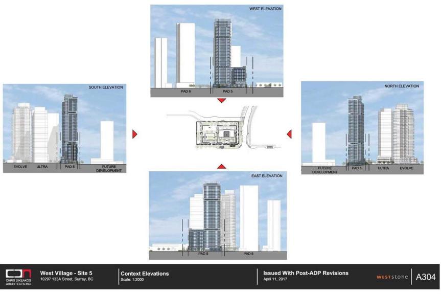 The scale of the project, designed by Vancouver-based Chris Dikeakos Architects is set to further transform the growing West Village neighbourhood to the west of Surrey Central Station. This latest tower is Phase 5 of an eventual 8 Phase project.