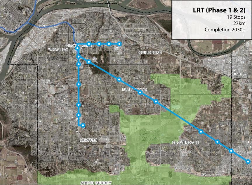 By that time, Phase 2 of the LRT is likely to be under construction – resulting in Surrey having 2 new rapid transit lines by the late 2020’s instead of just a single SkyTrain extension down low-density Fraser Hwy within the same time frame.