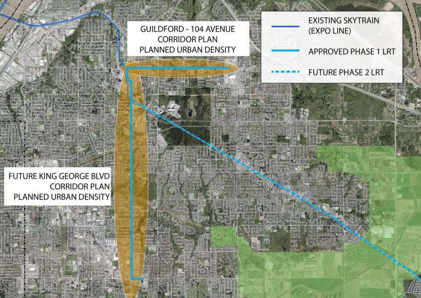 Guildford – 104 Avenue Corridor Plan – urban density planned along LRT route