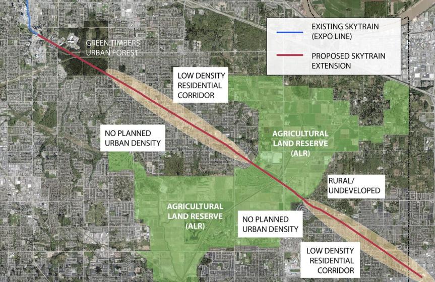 SkyTrain extension through low density suburbs / ALR with no planned urban density