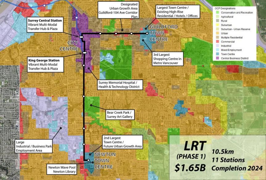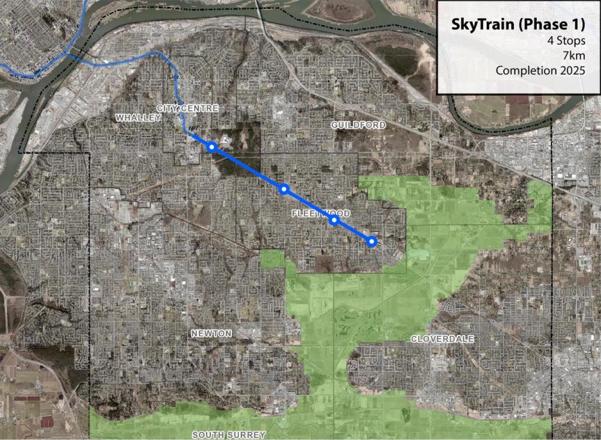 - Phase 1: Surrey-Newton-Guildford Line on 104 Avenue & King George Boulevard