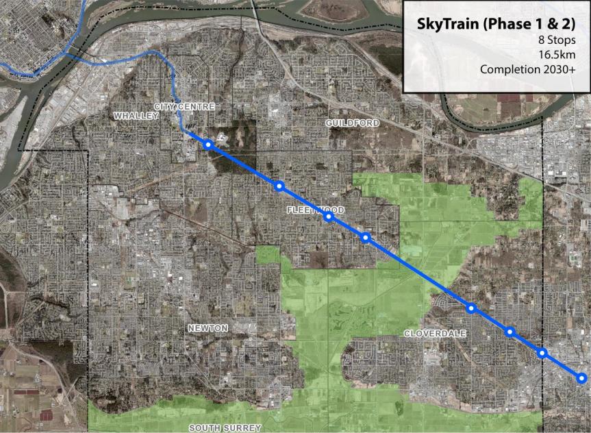 Eventual 8-Stop (16.5km) SkyTrain to Langley by 2030’s