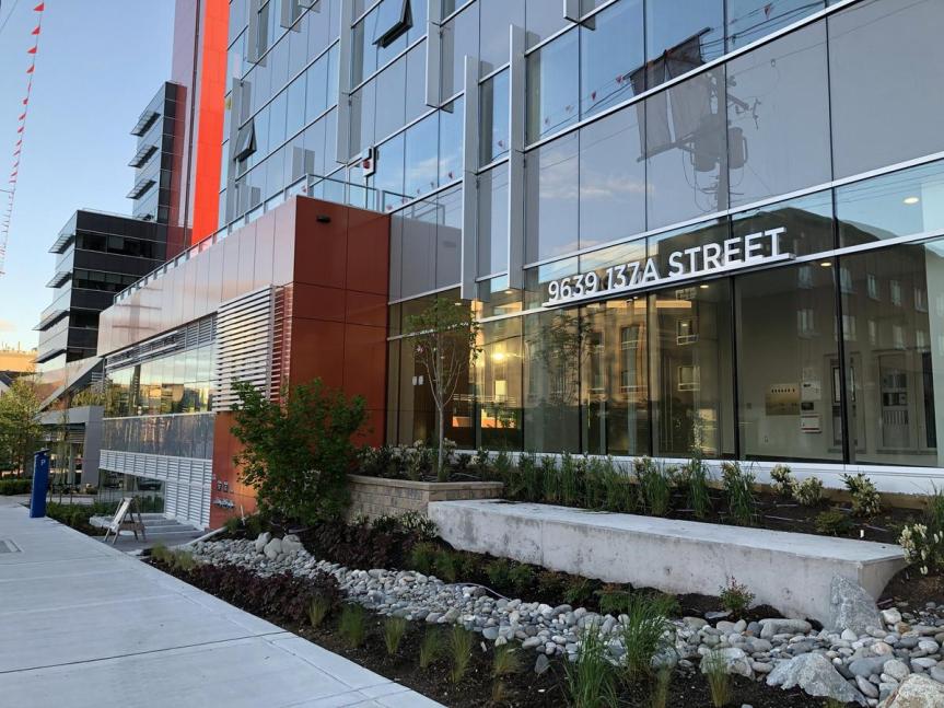 King George Hub office tower nearing completion at new intersection of King George Blvd and George Junction
