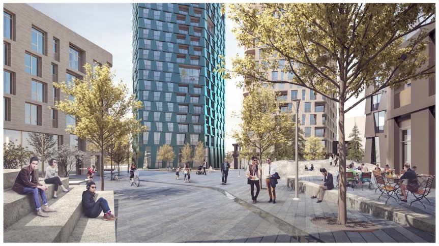 Back in 2013, Via Architecture prepared a ‘vision’ for what redevelopment could look like in the future. The concept envisioned a numerous mixed-use buildings for the site integrated with a transit-oriented plaza linking City Hall to Central City. The buildings would contain office, university, and retail space. The plan also envisioned: