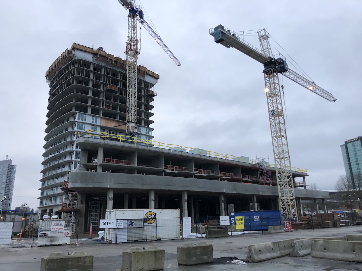 As of December 2021, there are 20 major projects under construction in Surrey City Centre, representing 18 high-rise and 8 low-rise buildings. The past month saw 2 new projects begin construction.