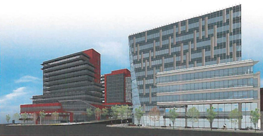 Lark Group‘s 10-storey ‘City Centre 3’ development across from Surrey Memorial Hospital is set to appear before Council on Monday, September 11 for 1st & 2nd readings. The project is the 3rd in a series of towers being developed by Lark Group as part of the emerging medical, technology district dubbed Innovation Boulevard. The tower follows the 12-storey ‘City Centre 1’ completed in 2014, and the currently under construction 12-storey ‘City Centre 2’. A Business in Vancouver article published earlier this year indicated that Lark Group has plans for up to 8 towers in total for the area, envisioned to become a “Stanford University type” medical / research hub.