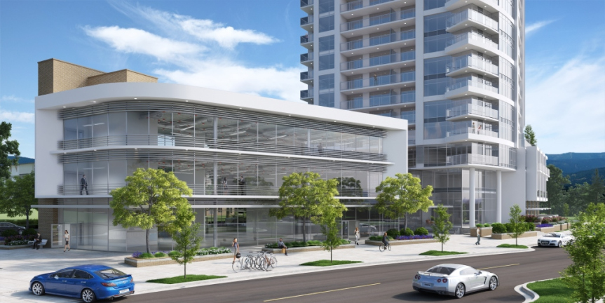 Tien Sher Group received preliminary approval in April for for their 51-Storey mixed-use ‘Whalley Station’ project located at King George Blvd and 108 Ave. The tower is to become Surrey’s tallest building once completed, with 501 residential units above a 6-storey office and retail podium. The development will also create a new plaza on the south west corner of King George & 108 Ave leading into a grand 6-Storey atrium through the site. The current application is for a general development permit and rezoning only, with a separate detailed development permit application expected in the future.